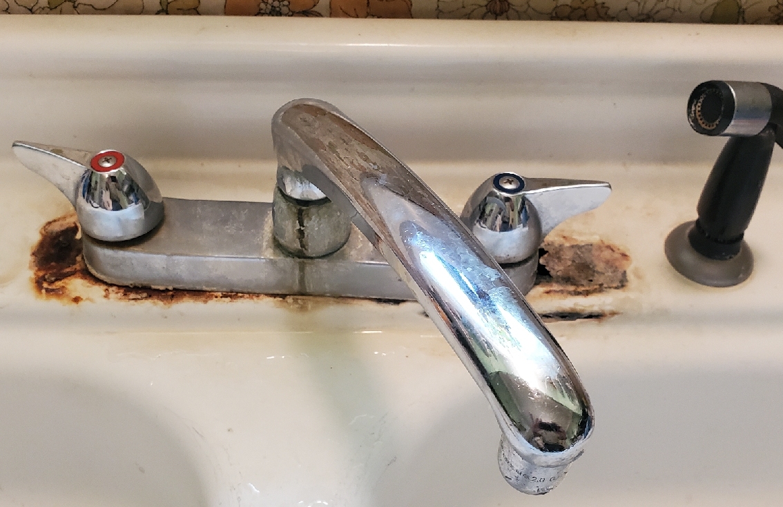 A client had a lovely two-basin kitchen sink with drainboards on either side which was original to their historic home and their authentic kitchen. The only problem was that the steel had rusted behind the faucet.